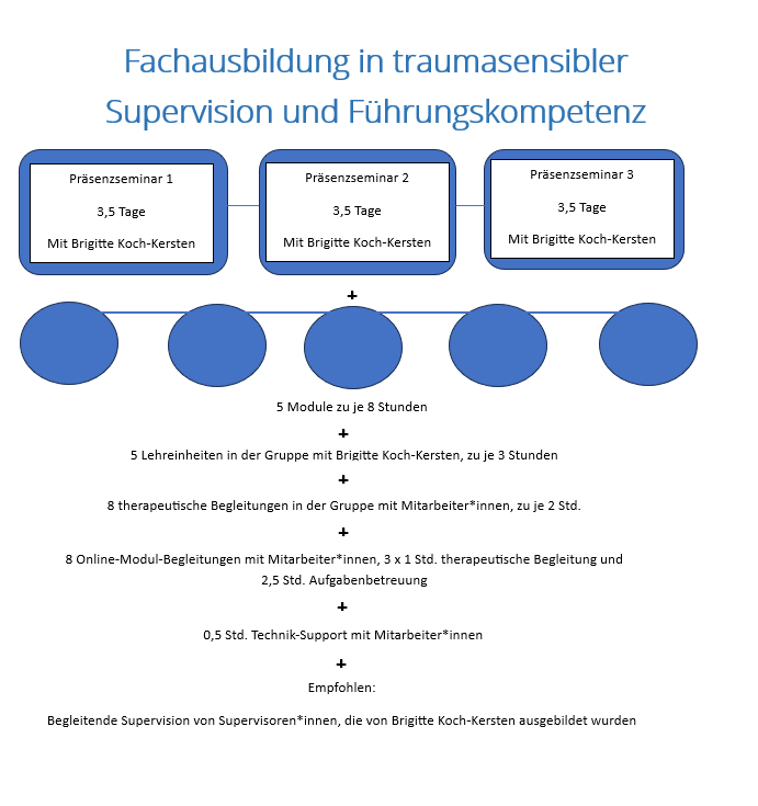 - Die Fachausbildung traumasensible Supervision findet in unterschiedlichen Seminarformen statt. Diese sind: